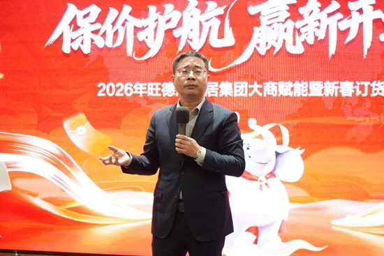 随后,旺德府家居集团供应链中心总经理周军先生围绕2026年度供应体系、产品研发及环保创新发表专题讲话,重点强调将持续提升产品性能与环保标准,加快产品拓展与结构优化,以更稳定的品质与更高效的交付能力,为市场与合作伙伴提供有力支撑。
