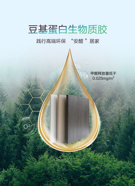 万象负离子生态板,以“食材级”安全标准严苛打磨每一处细节。产品核心采用豆基蛋白生物质胶,原料取自优质大豆产区的天然大豆蛋白,通过生物提纯与改性工艺,保留蛋白原生活性,依靠分子天然交联实现板材粘合,真正做到无醛添加。
