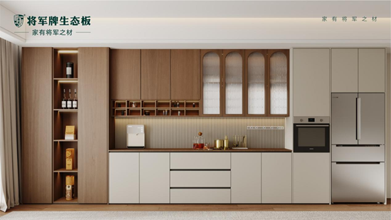 坚固抗变形,是将军牌生态板最鲜明的优势,也是其赢得消费者信赖的核心底气。板材结构密实均匀,咬合紧密,在抗压性、耐磨性和稳定性上表现卓越,能够从容应对日常使用中的各种场景——无论是定制衣柜的高频开合、橱柜的重物摆放,还是客厅护墙板的日常碰撞,都能长久保持平整如初的品相,不易变形、不易开裂、不易磨损,彻底解决家居板材使用中的常见困扰。