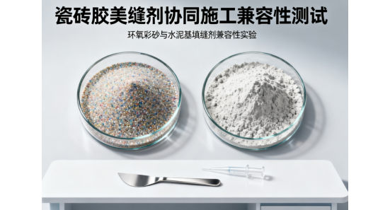 在现代装修工程中,瓷砖胶与美缝剂的协同施工质量直接影响着饰面的耐久性与美观度。近年来,环氧彩砂凭借优异的抗渗性和色彩稳定性逐渐成为高端装修的首选材料,而传统水泥基填缝剂仍以其经济性在工装领域广泛应用。然而两种材料的化学属性差异可能导致界面反应,本文通过模拟施工现场环境,从粘结强度、耐水性、热稳定性三个维度展开兼容性测试,为施工工艺优化提供数据支撑。