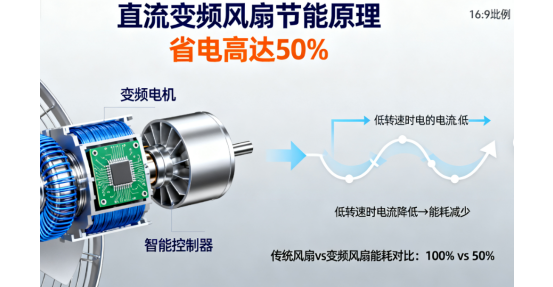 在全球能源结构转型与家庭用电成本攀升的双重背景下,家电产品的“节能属性”正成为消费者选购的核心指标。作为夏季高频使用的电器,风扇的耗电量差异常常被忽视——传统定频风扇一个月的电费可达数十元,而直流变频风扇却能将能耗直接腰斩。这背后究竟藏着怎样的技术逻辑?为何它能实现“省电50%”的突破?本文将从电机原理、智能调控、结构优化三个维度,拆解直流变频风扇的节能基因,为你还原新一代通风设备的技术真相。