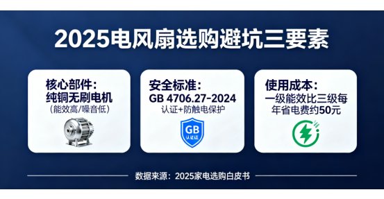 综合以上要素,2025年电风扇选购可遵循“参数筛选→功能取舍→安全验证→售后对比”四步法: