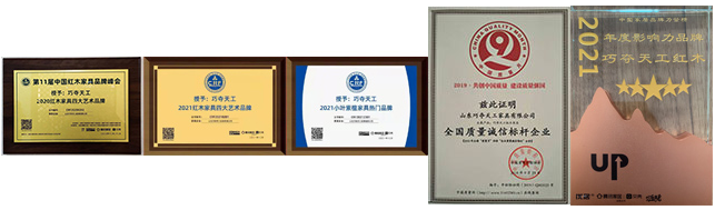 坚持品牌战略。巧夺天工先后获得“企业标准领跑者”“中国红木行业最具影响力品牌”“全国质量诚信标杆企业”等荣誉称号,树立行业典范。