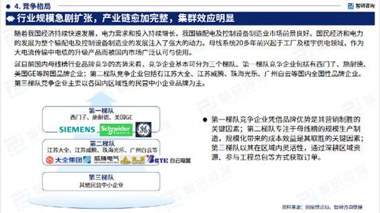 第一梯队竞争企业凭借品牌优势是其营销制胜的关键因素;第二梯队专注于母线槽的规模生产制造,规模化带来的成本效益是其取胜的关键因素;第三梯队以其在区域内灵活性,通过深耕区域资源、参与工程总包等方式获取订单。