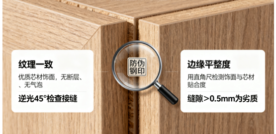 芯材是决定生态板物理性能的核心。目前市场主流芯材包括马六甲芯、杨木芯、杉木芯和多层实木板芯。消费者可通过以下方法判断芯材质量:在板材未封边的切面处,观察木纤维排列是否紧密,优质芯材断层处木刺细腻且分布均匀,而劣质芯材常出现明显的空洞或树皮杂质。