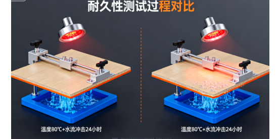 常态粘结强度测试采用万能材料试验机,以50mm/min的速度进行90°剥离试验;耐湿热老化测试在温度(40±2)℃、相对湿度(90±5)%的环境箱中放置168小时后测试强度保持率;耐冷热循环测试则经历20℃(4h)→23℃(1h)→70℃(4h)→23℃(1h)的循环,共20个周期;耐磨性测试使用Taber耐磨仪,以500g载荷、CS10砂轮在封边表面摩擦500次后观察磨损量。所有测试数据均通过SPSS26.0进行统计学分析,显著性水平设为P<0.05。