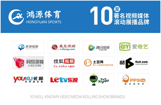 鸿源体育特意联合爱奇艺、土豆、优酷等相关视频网站,通过立体的视频网络将鸿源体育的产品和经营理念呈现在全国亿万网民面前,让更多合作客户直观地了解鸿源体育的发展优势。