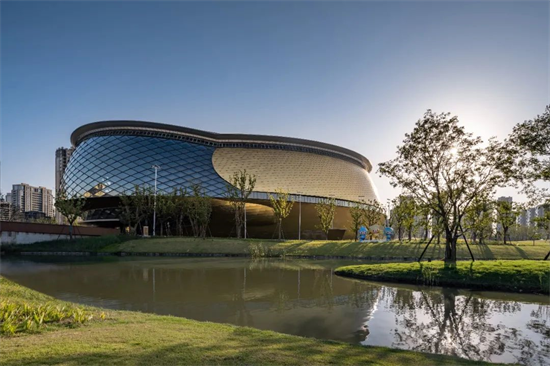 运河亚运公园体育馆位于公园南区,是南区的中心建筑,与人工湖、城市河道等水系交融互绕,与全面健身中心相对独立又相互贯通。
