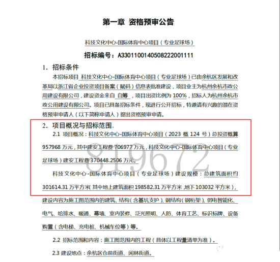 根据公告附件显示,国际体育中心项目的计划开工日期为10月8日,也就是杭州亚运会的闭幕日。
