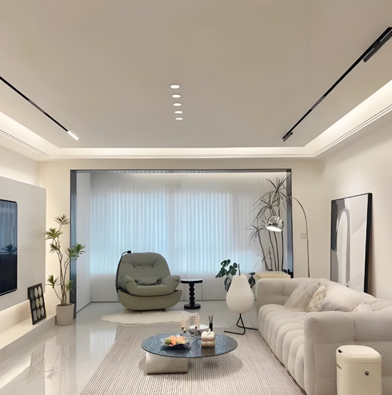 无主灯设计倡导“见光不见灯”的理念,通过隐藏式安装、分散布局等手法,将光源巧妙融入空间的每一个角落,营造出层次丰富、氛围感强的光影效果。智能无主灯更是将这一美学理念推向了新的高度,用户可以根据个人喜好或季节变化,随意调整灯光模式。