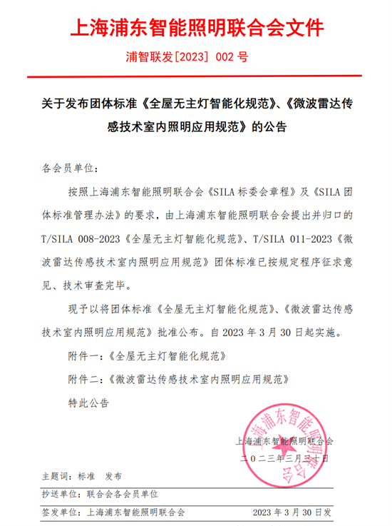 近日,由上海浦东智能照明联合会组织,三雄极光牵头主编的《全屋无主灯智能化规范》团体标准在2023(第六届)40人智能照明论坛正式发布,对引导标准相关行业发展方向,带动行业整体迭代升级具有重要作用。