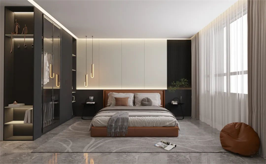 注重私密性和放松安静,布灯时要避免灯光直射枕头;床边配一盏小台灯、吊灯或者壁灯,方便晚上起夜。