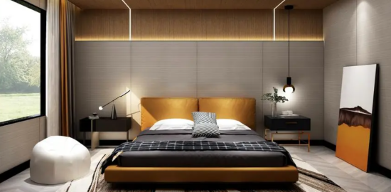 射灯是一种具有强烈指向性的无主灯设备,能够突出空间中的某个区域或物体。在墙面、天花板或某个摆件上安装射灯,能够营造出独特的氛围和视觉焦点。射灯光线较强,适用于面积较小或层高较低的空间。