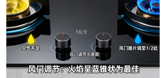 风门作为控制空气进入量的关键部件,其调节精度直接决定燃烧效率。当火焰出现红火、黑烟或回火现象时,说明风门调节不当:空气不足会导致燃烧不充分,形成一氧化碳隐患;空气过量则会造成热量流失。正确调节方法为:点燃灶具后,用一字螺丝刀缓慢旋转风门拨片,观察火焰状态至呈现清晰的蓝色锥体,内焰高度约1.5cm,外焰稳定无飘动感。液化石油气与天然气灶具的风门调节存在差异,前者空气需求量更大,通常风门开度需比后者增加15%20%。调节过程中需注意安全,建议佩戴隔热手套,避免烫伤。调节完成后应观察10分钟以上,确保火焰在不同火力档位下均保持稳定燃烧状态。