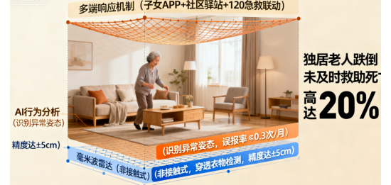智能家居适老化改造正是在此背景下应运而生的解决方案。不同于普通家庭的智能化升级,适老化改造更注重“无感守护”与“应急响应”的平衡,其中跌倒监测系统作为核心安全模块,正从实验室走向万千老人家庭。